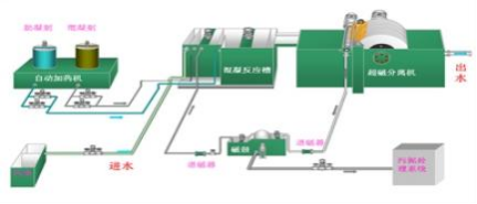 超磁分離機(jī):分離性能優(yōu)于冶金行業(yè)用磁盤機(jī), 分離后出水懸浮物小于 10mg/L,并能處理大流量污水,體積緊湊。