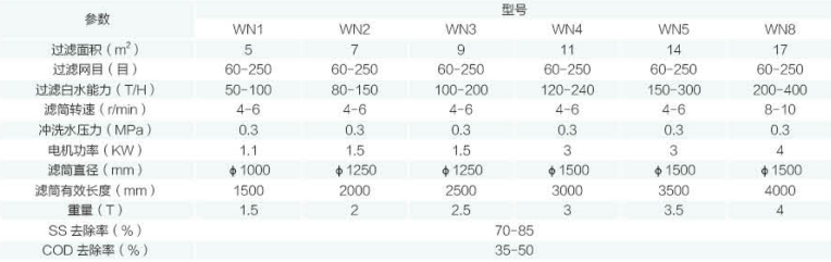 注:當廢水濃度越高、網目越高,SS、COD 去除率越高。可根據用戶需求,定做處理量大的機型和不銹鋼材質配件。